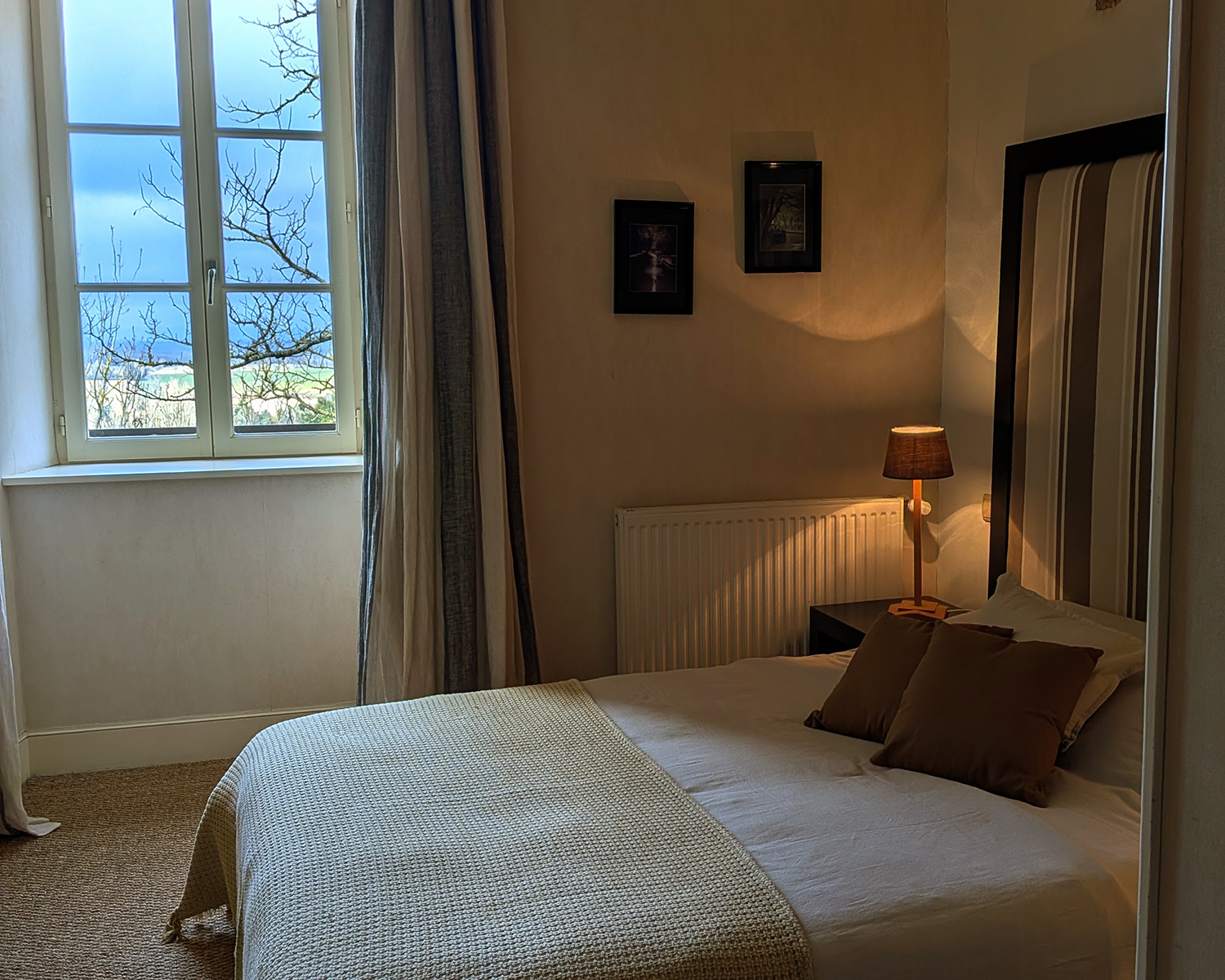 Chambres équipées, literie confortable, petit-déjeuner inclus, accueil attentif : tout est pensé pour rendre le séjour agréable et serein. Le cadre unique du château et sa situation privilégiée offrent une pause hors du temps, sans renoncer au confort.